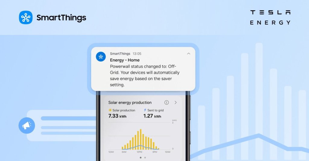 Aplikacja SmartThings może teraz wyświetlać informacje o produkcji, magazynowaniu i zużyciu energii przez produkty Tesla, takie jak Tesla Powerwall, Tesla Solar Inverter i Tesla Wall Connector.