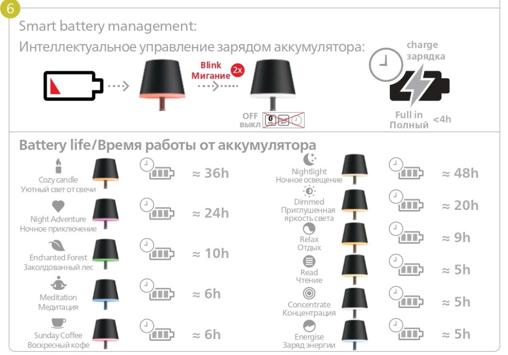 Sposób użycia: W związku z usypianiem urządzenia po dłuższej bezczynności (na zasilaniu bateryjnym). Lampę używam na co dzień pod zasilaniem z gniazdka, mając pełną możliwość komunikacji w każdej chwili. Dopiero w specyficznych sytuacjach jest ona odłączana od podstawki ładującej i używana bezprzewodowo. Przykładowo dla kobiet: w celu wytworzenia nastroju w łazience podczas kąpieli, czy dla mężczyzn biorących ją w nocy do ogrodu.