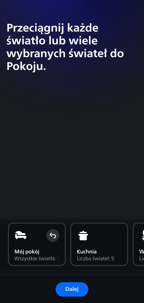 Po dodaniu lampy Philips Hue GO w aplikacji producenta, możemy przystąpić do dodania jej do platformy SmartThings. Przechodzimy do aplikacji SmartThings, na ekranie głównym aplikacji, klikamy Dodaj ( + ) znajdujący się w prawym górnym rogu ekranu, kolejno Dodaj urządzenie, w sekcji Urządzenia partnerów, kliknij Dodaj. Następnie z listy producentów, wybierz Philips Hue. Kolejno Wybierz Dalej i wykonaj instrukcję pokazaną na ekranie. Odłącz kabel Ethernet od mostka Hue i podłącz ponownie, następnie kliknij przycisk na centrali Philips Hue. Po chwili lampa zostanie odnaleziona i umieszczona w pokoju. Możemy zmienić nazwę, pokój, zmienić ikonę oraz dodać do panelu „Ulubione”. Na dole ekranu wybierz Zapisz, kończąc proces instalacji.