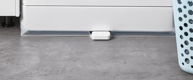 Ważnym aspektem montażu jest jego miejsce. Sensor najlepiej umiejscowić w miejscu prawdopodobnego wycieku np. obok zaworu, pod umywalką/zlewem czy zmywarką. W przypadku montażu przy pralce warto zaopatrzyć się w podkładkę IKEA NYTTIG, która zbierze wylaną wodę w obszar czujnika.