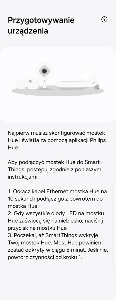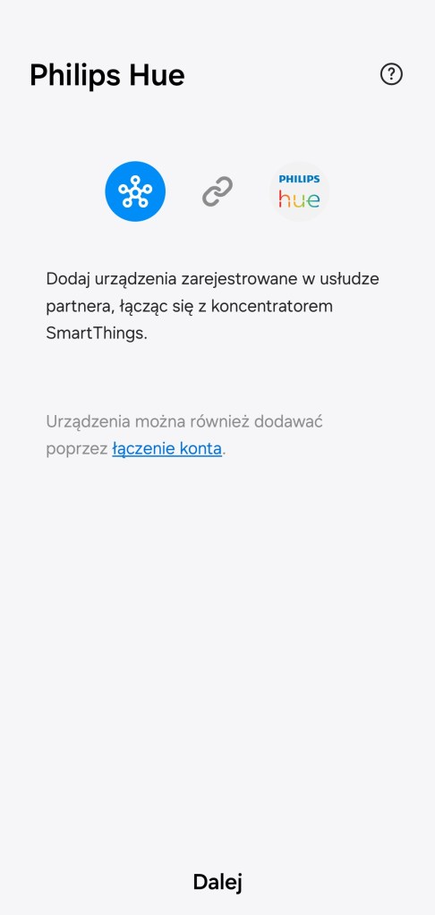 Posiadamy dwie możliwości dodania urządzeń Philips Hue do ekosystemu SmartThings. Pierwsza dotyczy użytkowników nieposiadających centrali SmartThings, tym samym łącząc lampę sufitową poprzez serwer. Pełna instrukcja instalacji poprzez chmurę znajduje się tutaj. Pamiętajmy jednak, że przy utracie połączenia z Internetem tracimy możliwość sterowania.
