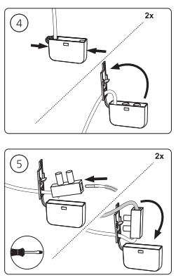 Kinkiet wiszący montuje się standardowo, jak jej klasyczne odpowiedniki. Pamiętaj, aby zadbać o bezpieczeństwo. Wyłącz bezpieczniki i upewnij się, że w przewodach nie płynie prąd. Rozdzielamy i identyfikujemy przewody, najczęściej znajdują się trzy: dwa fazowe i jeden neutralny. Przygotować należy również otwory na suficie i zamontować dołączony hak. Ostatnim krokiem jest podłączenie przewodów do lampy i dokręcenie jej do sufitu. Na kostki elektryczne przygotowano specjalne klipsy zabezpieczające.
