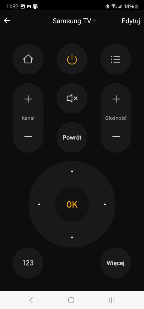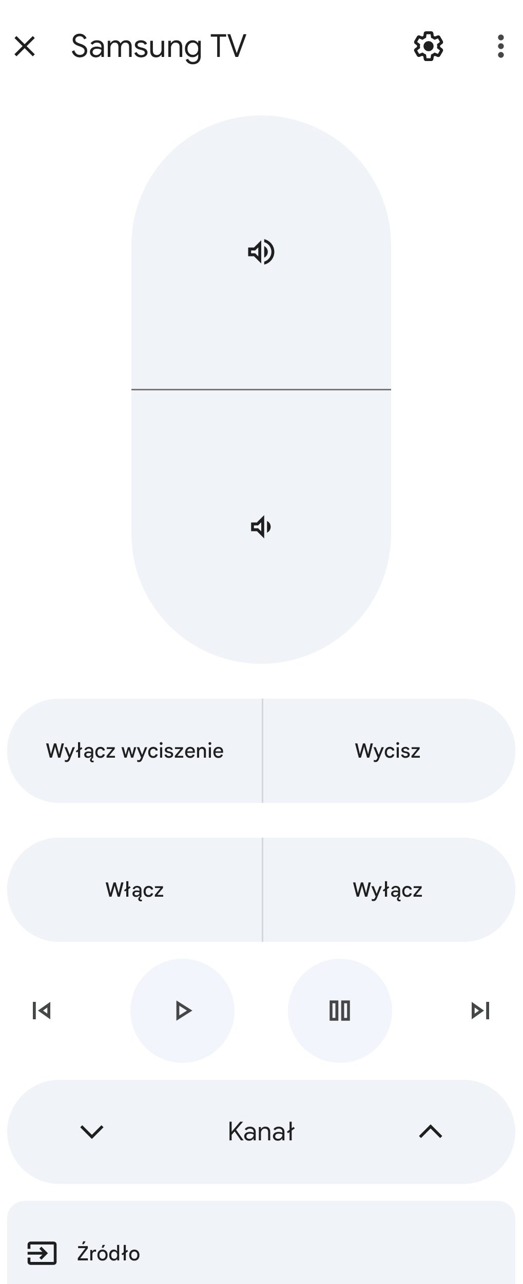 Wiele funkcjonalności: zmiana głośności, kanału, źródła. Możliwość korzystania z przycisków multimedialnych, również włącz/wyłącz na zasadzie SmartThings. Google Home nie wyświetla stanu urządzenia.