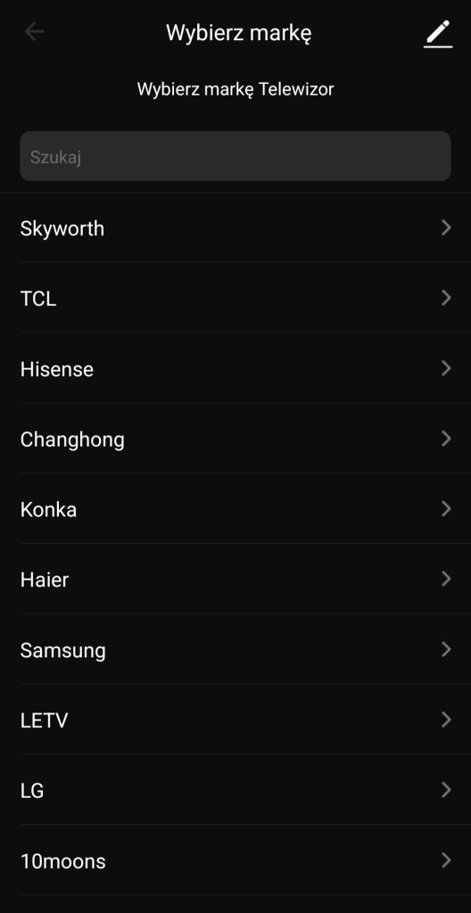 Pilot możemy dodać w aplikacji Tuya Smart, w zakładce urządzenia wybieramy nasz pilot i klikamy „+” lub dodaj. Wybieramy typ urządzenia i markę. Następnie należy wykonać test czy zaprogramowane domyślnie sygnały działają, jeśli nie możemy ręcznie je zaprogramować.