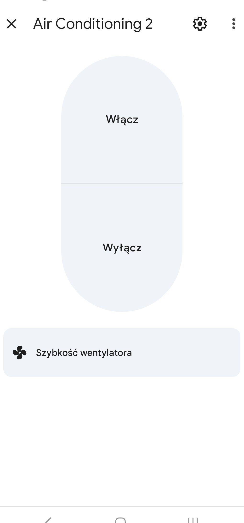 Włącz/wyłącz, prędkość wentylatora. W moim przypadku lepiej zastosować połączenie klimatyzacji przez oryginalne rozwiązanie producenta -hOn Smart Home.