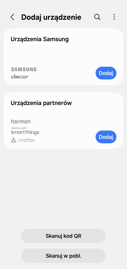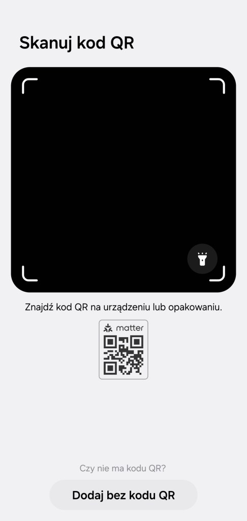 Instalacja urządzeń Matter jest niezwykle prosta. Zaraz po podłączeniu gniazdka do prądu, możemy spodziewać się otrzymania komunikatu o wykryciu nowego urządzenia. Możemy już kliknąć Dodaj, lub zrobić to ręcznie w aplikacji SmartThings. My ukażemy drugą opcje konfiguracji.