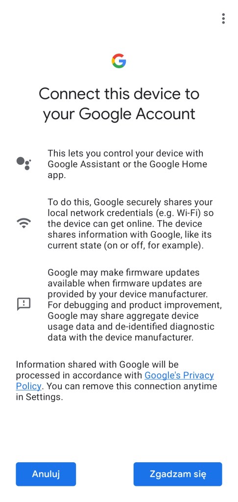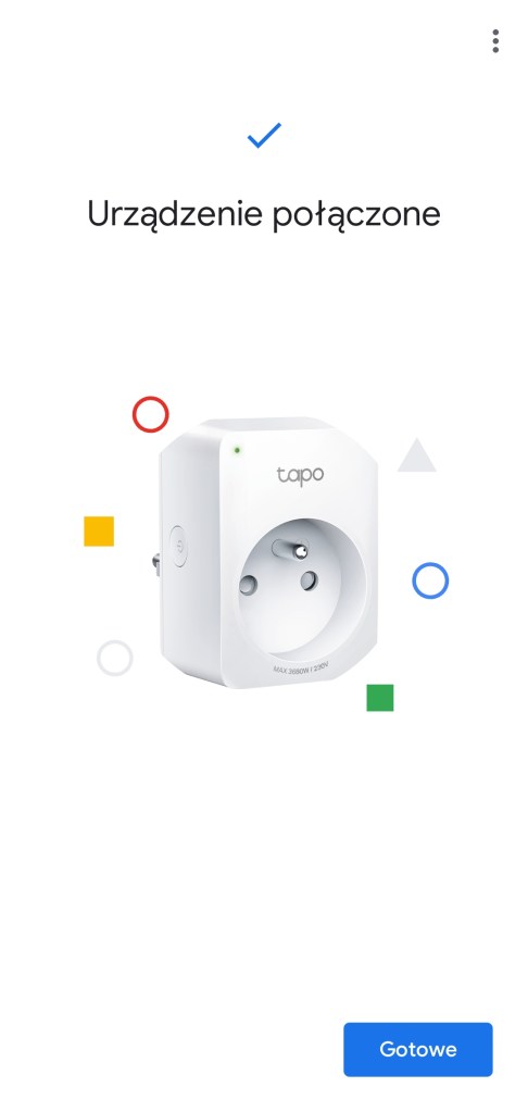Aby udostępnić gniazdko aplikacji Google Home, na ekranie sterowania urządzeniem, wybieramy Więcej opcji ( ⋮ ), następnie Udostępnij innym usługom. Otrzymamy listę, jakim aplikacjom już daliśmy dostęp oraz jakie usługi mamy jeszcze dostępne. Wybieramy Udostępnij przy logo Google Home. Kolejno stuknij Zgadzam się, po zaznajomieniu się z polityką prywatności. Po chwili gniazdko Tapo zostanie dodane, kliknij Gotowe. Następnie możemy wybrać pokój i nazwę dla wtyczki. Teraz możemy sterować urządzeniem z nowej aplikacji.