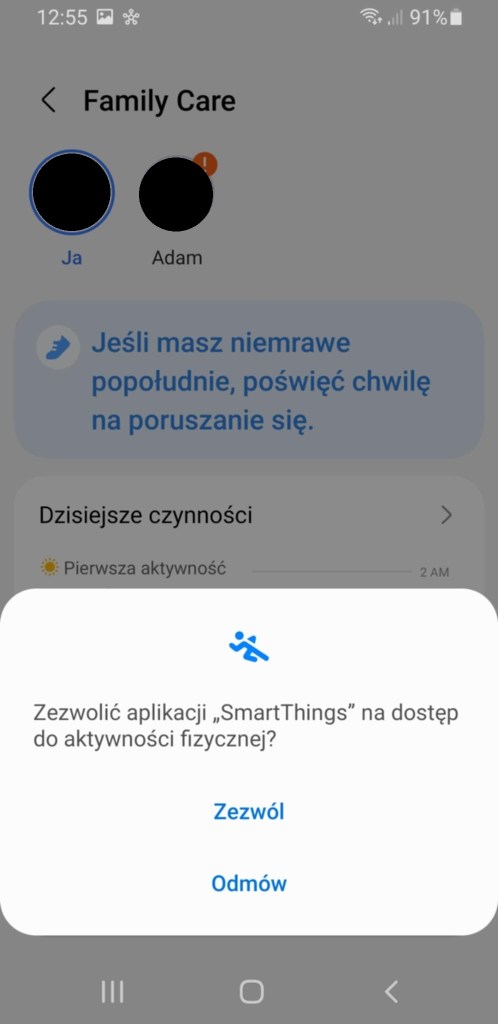Następnie musimy dodać naszych domowników do usługi. Oni zaś z poziomu własnego telefonu Galaxy muszą wyrazić chęć uczestnictwa i podzielenia się prywatnością.