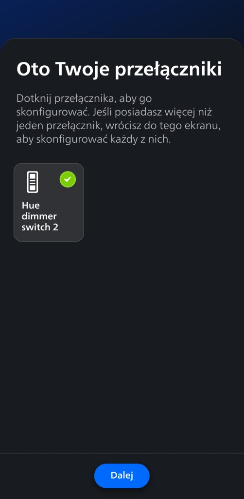Standardowo, jak w przypadku innych urządzeń Philips Hue, w ustawieniach możemy wybrać akcje po kliknięciu kolejnych przycisków na pilocie. Ściemniacz może działać w cyklach. Uruchamiając sekwencyjnie poszczególne scenerie świetlne.