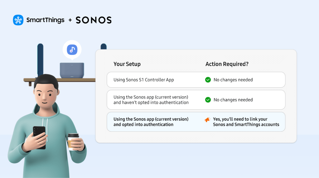 - Musisz połączyć swoje konta Sonos i SmartThings, aby utrzymać integrację. Po połączeniu wszystko będzie działać normalnie, w tym procedury i scenerie.