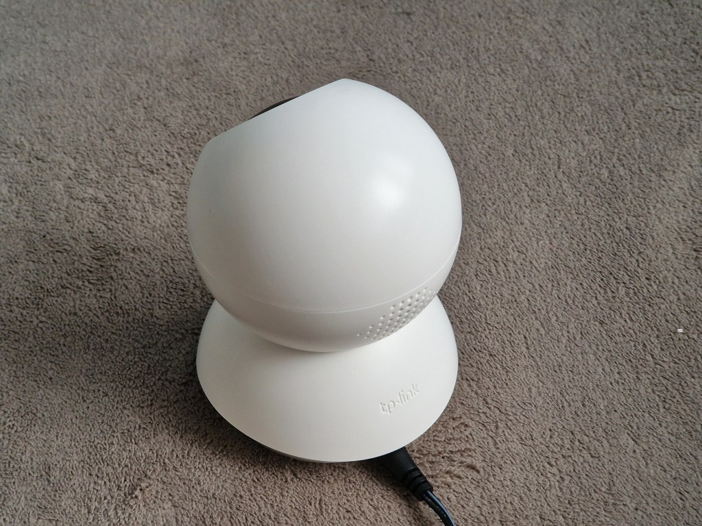 Kamera nie wyróżnia się wyglądem na tle innych tego typu urządzeń. Jest wykonana z dobrej jakości białego plastiku, choć obudowa wokół obiektywu jest błyszcząca, przez co staje się magnesem na wszelkiego rodzaju zabrudzenia. Pod nią kryją się cztery diody podczerwieni, które odpowiadają za widzenie w ciemności. Po skierowaniu obiektywu maksymalnie do góry zobaczymy gniazdo na kartę microSD o pojemności do 256 GB (brak w zestawie) i przycisk resetu urządzenia. Z tyłu znajdziemy złącze zasilania i otwory głośnika. Od spodu kamerę można zamontować na specjalnej stopce, która umożliwia montaż na ścianie lub suficie. Urządzenie posiada funkcję obrotu o 360 stopni w poziomie i 114 stopni w pionie.