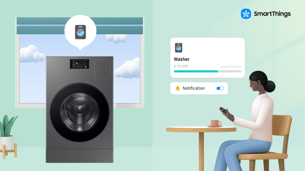 SmartThings Cię wspiera (i ma kosz na pranie), niezależnie od tego, czy siedzisz na kanapie, czy załatwiasz sprawy, SmartThings trzyma Cię na bieżąco. Otrzymuj powiadomienia w czasie rzeczywistym o rozpoczęciu, wstrzymaniu lub zakończeniu cyklu prania, dzięki czemu nigdy nie będziesz się zastanawiać, czy pranie jest już gotowe. Jeśli ładunek wymaga uwagi (np. gdy zbyt długo stoi po suszeniu), SmartThings delikatnie Cię pobudzi, zanim Twoje ubrania ze świeżych staną się nieświeże. To jak mieć przyjaciela od prania, który nigdy nie zapomina!