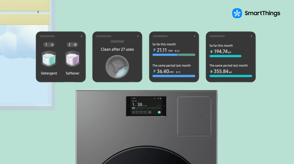Twoja pralka i suszarka są inteligentne, a dzięki SmartThings praktycznie same myślą. SmartThings ułatwia rozwiązywanie problemów, dzięki usłudze Home Care, stając się proaktywnym doświadczeniem. Możesz nie tylko wybrać tryby konserwacji, aby utrzymać pralkę i suszarkę w czystości, ale także powiadomić Cię o problemach z wydajnością i przeprowadzić przez etapy auto diagnostyki często, zanim zorientujesz się, że wystąpił problem. Pomaga to zapobiegać awariom i oszczędza Twój czas (i wizyty serwisowe).