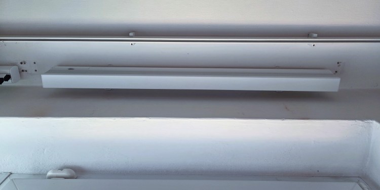 IKEA TREDANSEN to bezprzewodowa roleta, zasilana wbudowanym wymienialnym akumulatorem. Dzięki temu nie jest konieczne ciągnięcie dodatkowych kabli elektrycznych. Mamy do wyboru białą tkaninę wykonaną w 100% z poliesteru, będącego w 100% z recyklingu. Zaskakująco dobrze zaciemnia pomieszczenie, zapewne poprzez zastosownie plisowania. Rozwinięcie rolety na całą długość zajmuje około minuty. Przejdźmy do głośności pracy, generowany hałas przez rolety przypomina trochę sterowany zdalnie, zabawkowy samochód, ale nie jest odczuwalny jako nieznośny. Roleta nie posiada sznurka, co zwiększa bezpieczeństwo przed dziećmi.