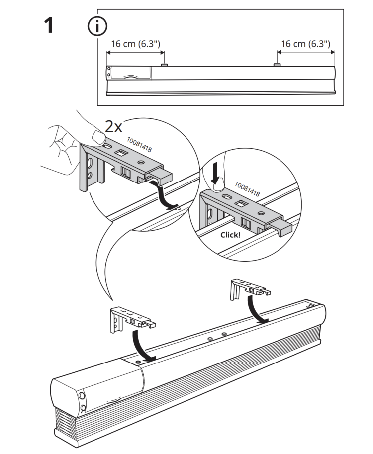 - Uchwyty znajdować muszą się w odległości 16 cm od boków rolety. Wczepiamy uchwyty w rolety i przyrównujemy ją do docelowego miejsca nad oknem. Polecamy, jak przedstawiono w instrukcji narysować, ołówkiem miejsce wiercenia.