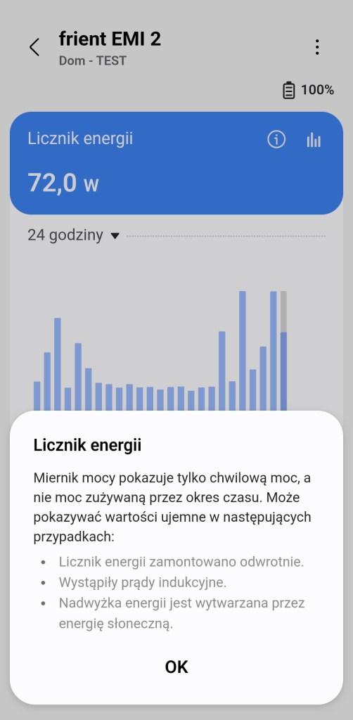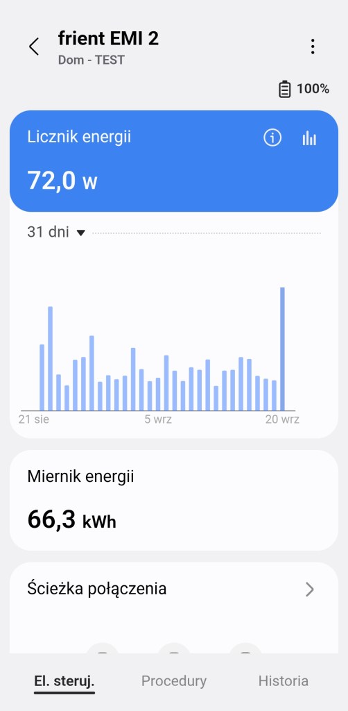 Niestety dyżym minusem miernika frient jest brak kompatybilności z usługą SmartThings Energy. Nie zobaczmy odczytów zużytej energii elektrycznej. Cieżko stwierdzić czy jest to zablokowane przez samego Samsunga i funkcja jest ekskluzywna na terenie Europy dla urządzeń RTV i AGD. Czy producent jednak nie postarał się tworząc sterowniki Edge. Nie wyklucza to oczywiście dodania wsparcia w przyszłości.