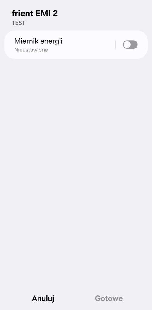 Mamy również dodatkowe Ustawienia miernika energii frient. Zaraz po dodaniu urządzenia do aplikacji zalecam ustawienie parametru Pulse Configuration, który odpowiada za korelację impulsów LED z pobraną energią elektryczną z sieci. Drugi parametr to Initial Energy Configuration, gdzie możemy ustawić początkową wartość zużytej już energii. Miernik działa z licznikami wyposażonymi w migającą diodę LED o standardowej częstotliwości 1000 impulsów/kWh. Konfigurowalna częstotliwość impulsów jest dostępna z wybranymi hubami.