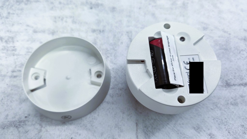- Upewnij się, że bateria jest prawidłowo włożona – w przeciwnym razie zamontowanie alarmu w podstawie nie będzie możliwe.