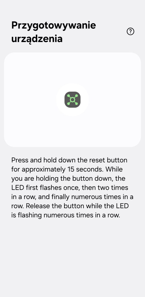- Jeśli wyszukiwanie bramy przekroczyło limit czasu, krótkie naciśnięcie przycisku LED spowoduje ponowne uruchomienie wyszukiwania.