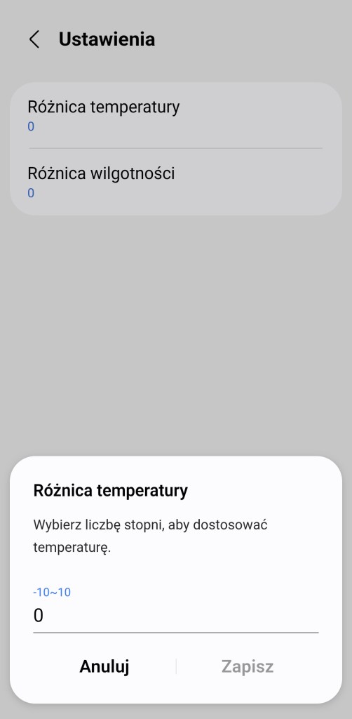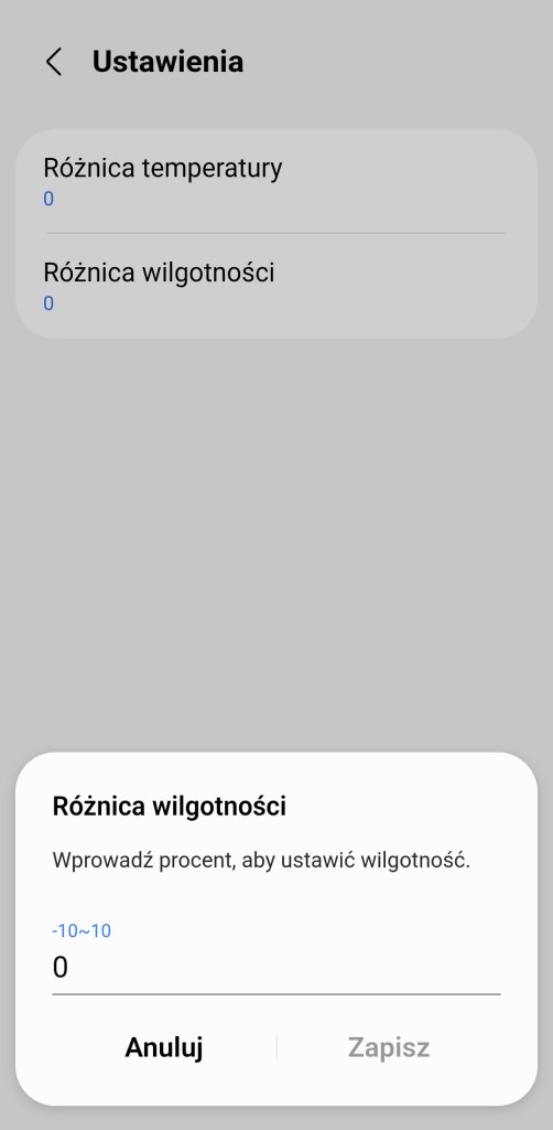 Czujnik temperatury i wilgotności posiada dodatkowe opcje korekty różnicy wilgotności oraz temperatury, możemy zniwelować je w zakresie -10 – 10 jednostek.