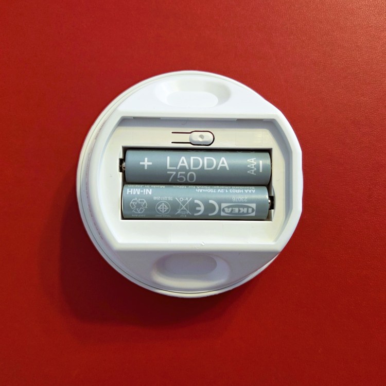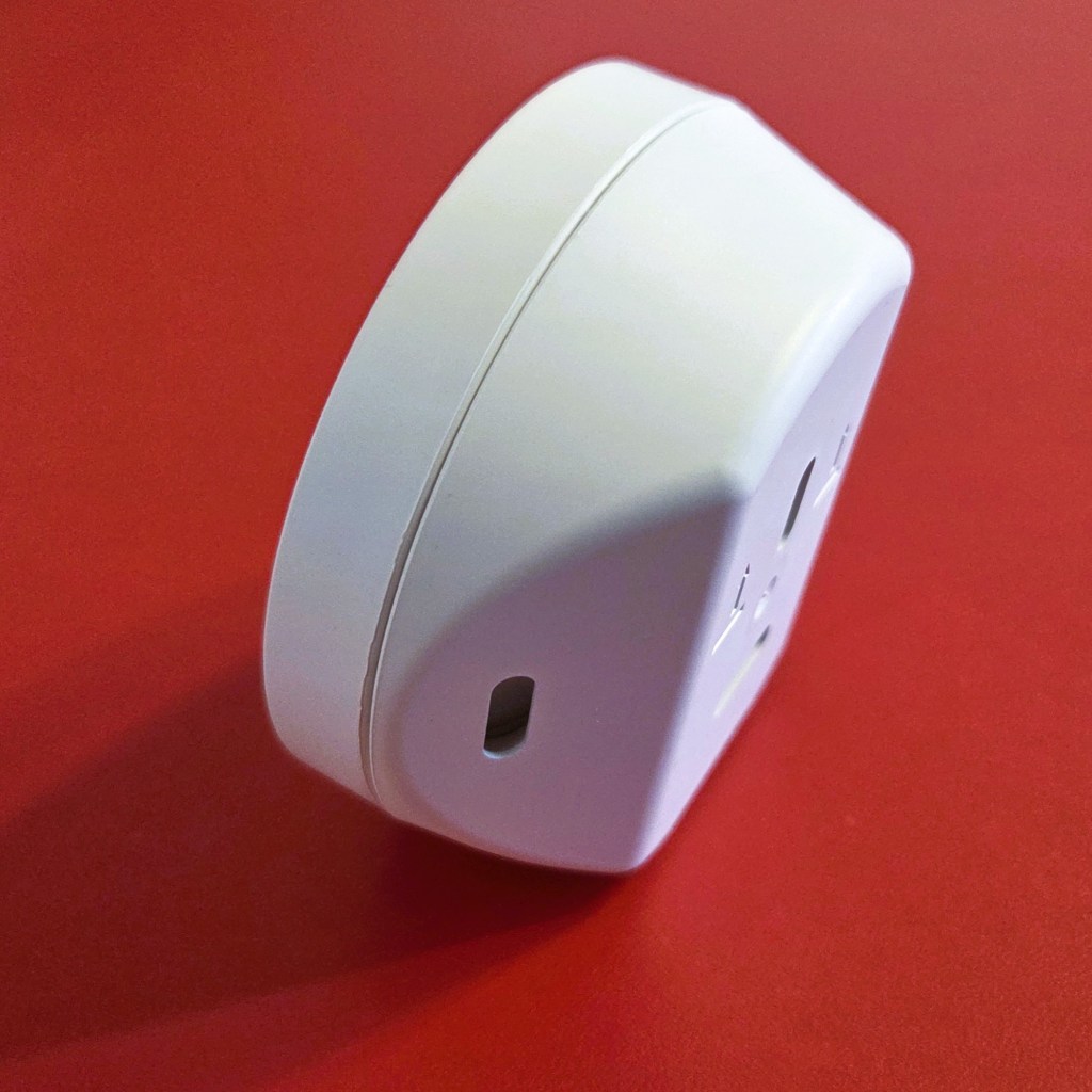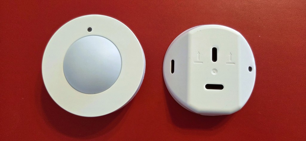 Czujnik IKEA MYGGSPRAY oczywiście ma za zadanie detekcji ruchu, ma maksymalny zasięg do 10 metrów, a kąt widzenia to od 60° do 120°. Czas reakcji jest prawidłowy. Sensor posiada czerwoną diodę LED do sygnalizacji parowania i resetu. W komorze baterii znajdziemy przycisk resetu. Komunikacja odbywa się po protokole Thread. Działa na zasilaniu bateryjnym, informując o aktualnym zużyciu. Zasilanie to dwie baterie AAA, czyli cienkie paluszki. Producent nie podaje szacunkowego czasu żywotności na komplecie baterii. Sensor ma dość duże wymiary: 7 cm szerokości, 7 cm wysokości i 3,9 cm głębokości, wraz z tylną płytką mocującą. Budowa czujnika i zastosowana klapka montażowa pozwala ustawić czujnik na stoliku. Przykręcić do płaskiej ściany, jak i do rogu pomieszczenia za pomocą kołków. Producent dołączył również taśmę dwustronną, pozwalającą przykleić czujnik w dowolne płaskie miejsce. Niestety nie mamy magnesu na tyle sensora, więc nie przymocujemy do np. lodówki. Design do najlepszych nie należy, rzuca się w oczy, a jego styl jest dość przeciętny. Czujnik IKEA posiada atest IP67, co oznacza, że jest całkowicie pyłoszczelny oraz chroniony przed skutkami krótkotrwałego zanurzenia w wodzie. Tym samym można używać w pomieszczeniach i na zewnątrz. Dostępny jest tylko kolor biały. Temperatura pracy zaczyna się od 0ºC do 40ºC. Nie należy pozostawiać czujnika w bezpośrednim świetle słonecznym lub w pobliżu żadnego źródła ciepła, przegrzanie wpływa negatywnie na pracę urządzenia.