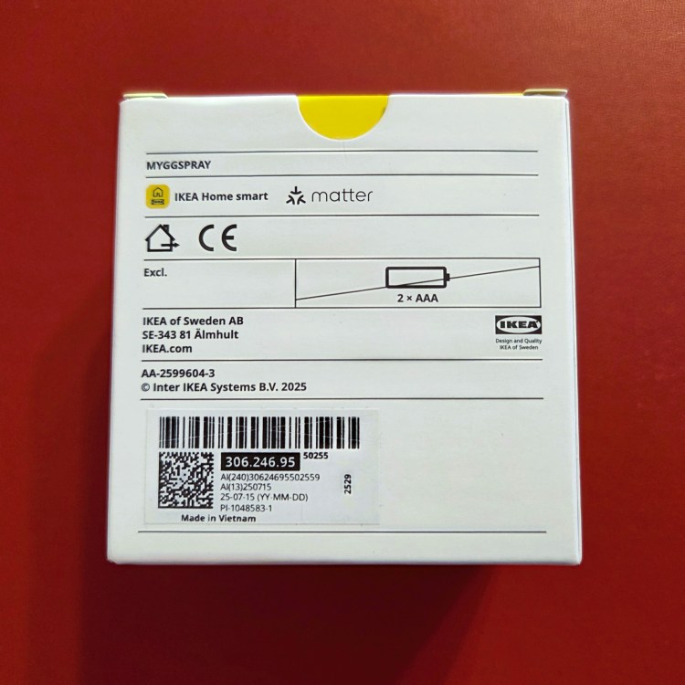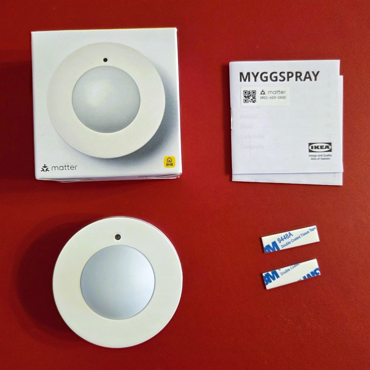 Czujnik ruchu IKEA MYGGSPRAY jest dostępny do zakupu w cenie 39,99 PLN. Dostępny jest w sklepie stacjonarnym i sklepie internetowym IKEA z możliwością dostawy. Zawartość pudełka to sensor, dwustronna naklejka oraz skrócona intrukacja obsługi. Nie znajdziemy w pudełku baterii AAA. Dodatkowe informacje znajdziesz na stronie produktu, tutaj link do oficjalnej strony.