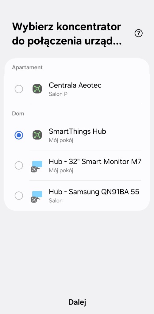 Przypominamy! Do obsługi urządzenia na platformie SmartThings, nie jest konieczne posiadanie bramki IKEA TRÅDFRI/DIRIGERA. Czujnik łączymy bezpośrednio z centralą SmartThings.