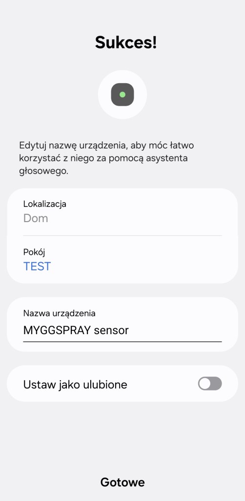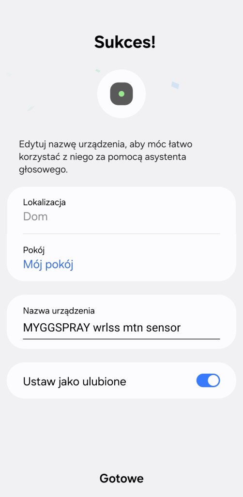 Dodanie do ekosystemu jest proste należy postępować zgodnie z instrukcją w aplikacji SmartThings. Klikamy na ekranie głównym przycisk Dodaj ( + ), w prawym górnym rogu ekranu. Następnie Dodaj urządzenie, kliknij Dodaj w sekcji Urządzenia partnerów. Z listy wybierz Matter. Musimy zeskanować kod QR znajdziemy wewnątrz opakowania. Jeśli posiadasz więcej niż jeden koncentrator to pojawi się monit o wyborze, stuknij Dalej. Po chwili cierpliwości (do około 1 minuty), nowy czujnik zostanie automatycznie dodana do platformy SmartThings. Teraz możemy zmienić jej ikonę, pomieszczenie oraz nazwę. Kończmy proces instalacji, wybierając Gotowe. Czujnik IKEA pojawi się w wybranym pokoju i jest gotowa do użytku.