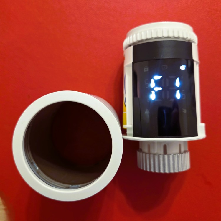 Aqara Radiator Thermostat W600 (model WT-A03D / WT-A03E) to głowica termostatyczna na kaloryfer. Możemy zamontować w instalacji z zaworami: RA, RAV, GIA, M28x1,5, RAVL i CAL. Tym samym termostat możemy zamontować na niemal 100% kaloryferów dostępnych na rynku. Głowica została wyposażona w ekran LCD podświetleniem, wyświetla on zadaną temperaturę nagrzewania. Komunikuje się za pomocą protokołu Zigbee/Thread. Do konfiguracji BLE. Głowica zasilana jest poprzez dwie baterie AA 1,5 V. Producent deklaruje ze wystarczą na dwa sezony grzewcze (do 2 lat). Jak każda głowica można usłyszeć dźwięki podczas skręcania lub rozkręcania głowicy – w mojej ocenie jest cicho, na pewno nie wybudzą ze snu. Aqara określa poziom głośności nie przekroczył 30 dBA. Aqara W600 mierzy temperaturę za pomocą kilku wbudowanych czujników, aby zapewnić dokładną i precyzyjną kontrolę z dokładnością 0.5°C. Zakres ustawień temperatury to 5- 30°C, ze skokiem co 0,1°C. Głowica posiada wymiary 5,7 cm średnicy oraz 9 cm wysokości. Waga sięga 347 gram. Urządzenie przeznaczone do użytku w pomieszczeniach, w temperaturze 0°C do 40°C i wilgotności 0 do 95%.