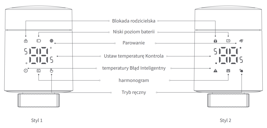 Urządzenie oferuje dwuletnią żywotność baterii, minimalizując konieczność częstej konserwacji i wymian. Dla wygody użytkowania, wbudowany wyświetlacz LED obraca się o 180°, umożliwiając łatwy i natychmiastowy odczyt ustawionej temperatury z każdego kąta.