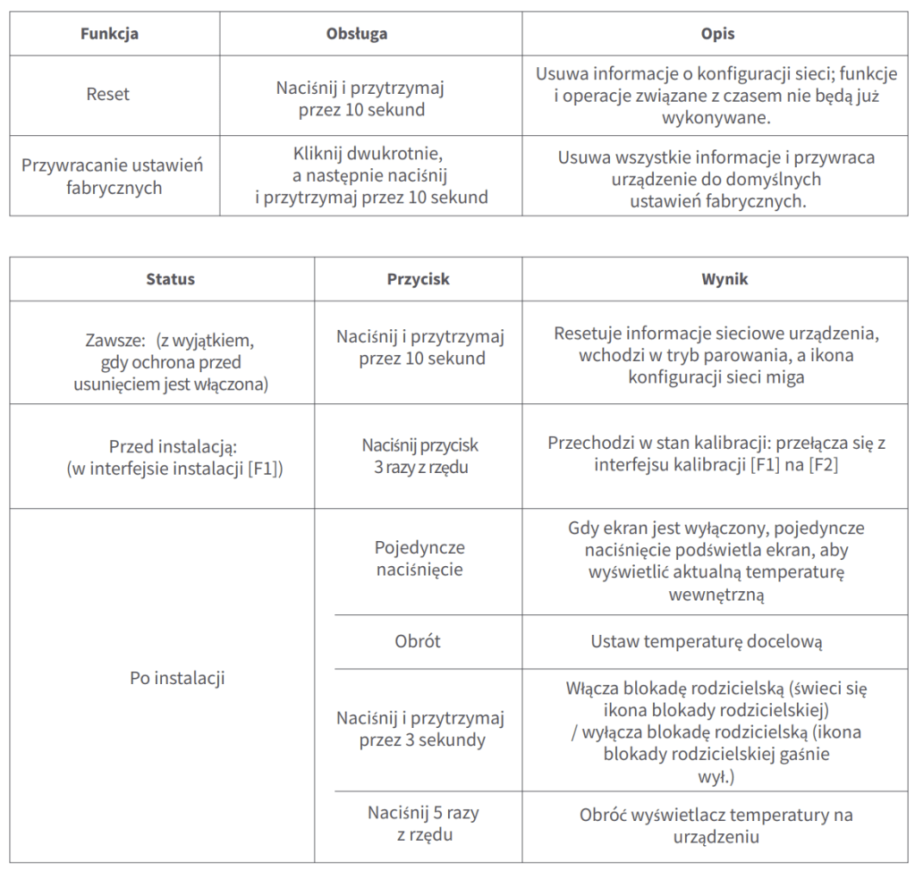 Jeśli chcesz sparować Aqara W600 z nowym koncentratorem/bramą Zigbee, musisz zresetować to urządzenie do ustawień fabrycznych, zanim będzie można je sparować z nowym koncentratorem. Aby przywrócić ustawienia fabryczne inteligentnego termostatu Aqara. Kliknij dwa razy i przytrzymaj przez 10 sekund przycisk resetu na inteligentnym termostacie. Ekran LED w pełni zaświeci się na 2 sekundy, a następnie wyłączy się. Inteligentny termostat Aqara jest teraz zresetowany do ustawień fabrycznych. Na ekranie zobaczysz „F1”, co oznacza, że powinieneś teraz móc sparować z nową centralą SmartHome.