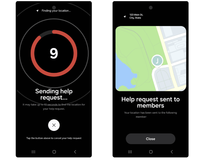 - Powiadomienia push natychmiast informują Twoje zaufane kontakty, udostępniając Twoją lokalizację GPS i zapewniając szybkie opcje połączenia telefonicznego, wysłania wiadomości tekstowej lub nawigacji bezpośrednio do Ciebie.